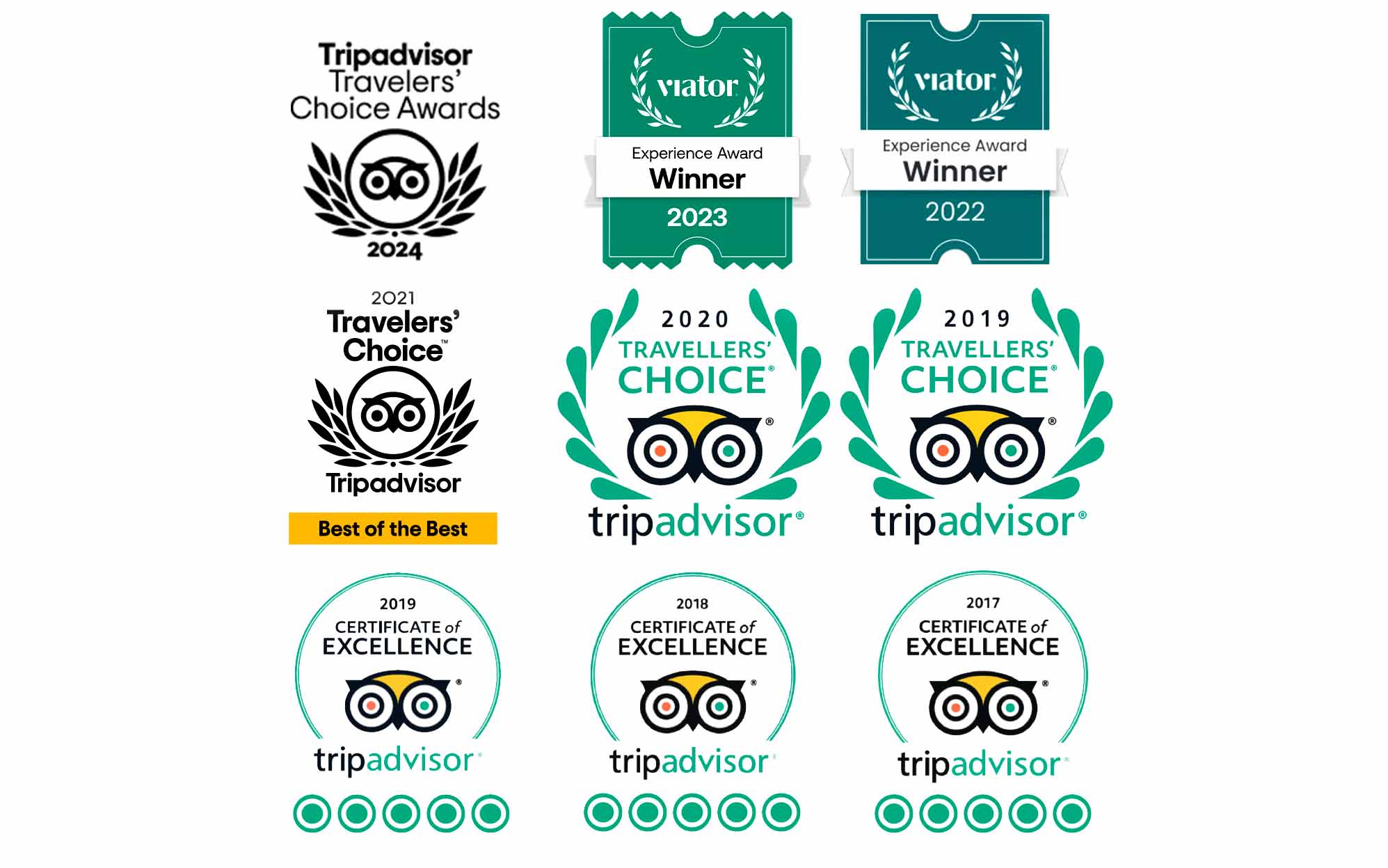 Recently, we received the prestigious Travelers' Choice Best of the Best 2024 award. It honors tours that excel in their category. We also earned this award before, in 2019, 2020, and 2021.
