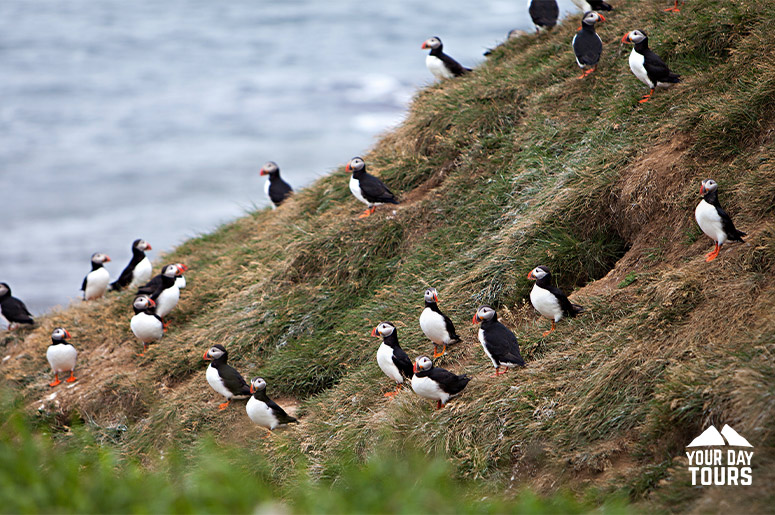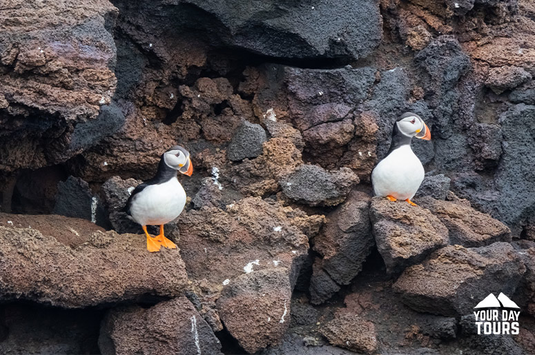 You simply cannot make all your way down to Stórhöfði and not go to see puffins, as it's one of the main things highly associated with the place. These seabirds are known for their distinctive appearance and cuteness. What should you know before going puffin-watching? Don't be surprised if you won't see so many of them during the daytime, as this is when puffins are gone fishing. So the best time to see them is late evening or early morning. Many birds fly around during August when they prepare their little ones for a departure at the end of the summer or at the beginning of September. Keep in mind that this is also the time when baby puffins tend to wander and end up in the town because they get confused by street lights. Don't worry; the good citizens bring the little ones back to the wilderness.